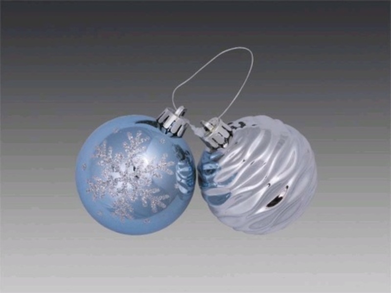 Гроздь из 2-х шаров: голубой блестящий с серебряной снежинкой/серебряная волна фигурный 6см PL172627