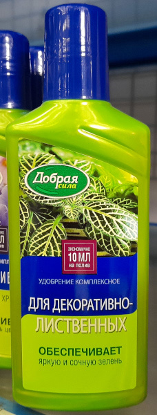 Удобрение для декоративно-лиственных растений Добрая Сила (жидкое органо-минеральное) 250мл (обеспечивает яркую и сочную зелень) 354532
