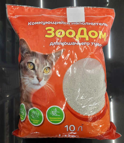 Комкующийся наполнитель для кошачьего туалета ЗооДом, 10 л, без запаха