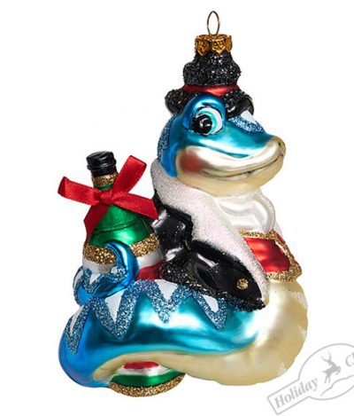 Елочная игрушка 243957 Змея "Джентльмен с вином" (стекло) 9х6,5х13,5 см (отдел елочная игрушка, подвеска на елку)