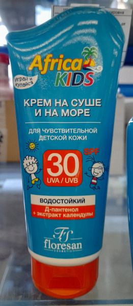 Крем детский для защиты от солнца SPF 30 Floresan Africa KIDS, 150 мл, для чувствительной детской кожи, Д-пантенол и экстракт календулы, ФН-410