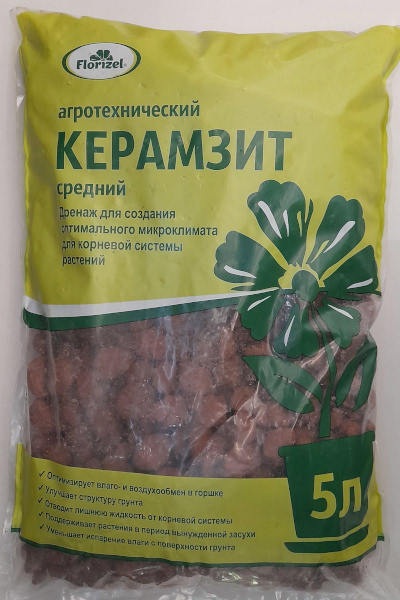 Керамзит средний 5 л Florizel (дренаж для корней растений) (отдел земля, грунт, почвогрунт, удобрение)