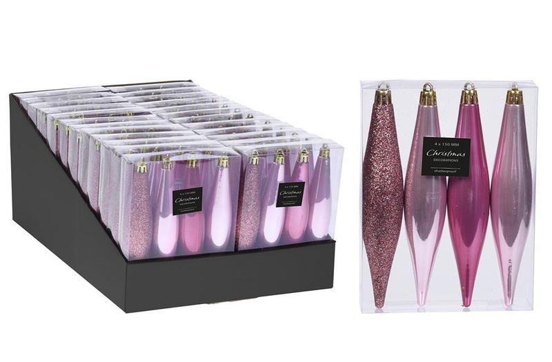 Набор елочных игрушек «Сосулька» пластик 15см 4шт Розовая 210500