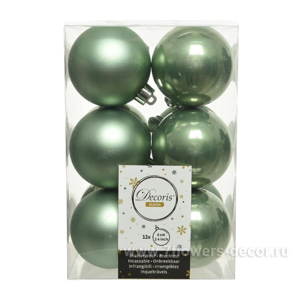 Количество товара Набор елочных украшений "Шар" пластик 6см 12шт Зеленый 021839