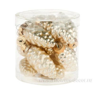 Набор елочных игрушек "Шишка" стекло D2,5хН6см 12шт Жемчужный 012106