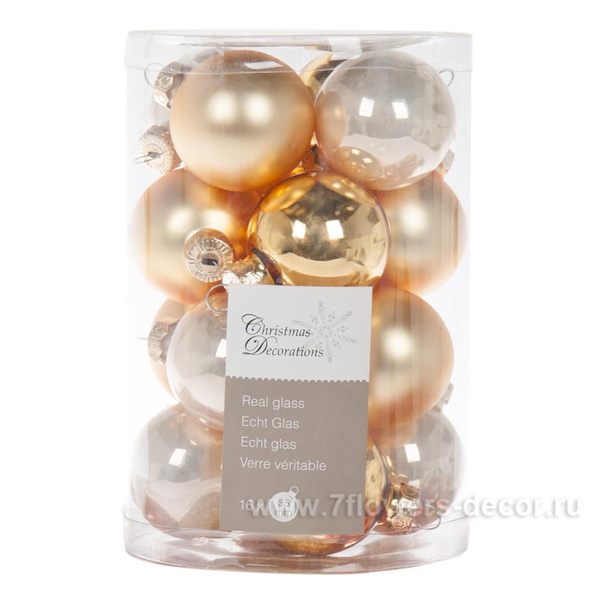 Количество товара Набор елочных украшений "Шар" стекло 3,5см 16шт Жемчужно-золотой 013402
