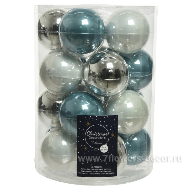 Количество товара Набор елочных украшений "Шар" стекло 6см 20шт Голубой/серебристый 142255