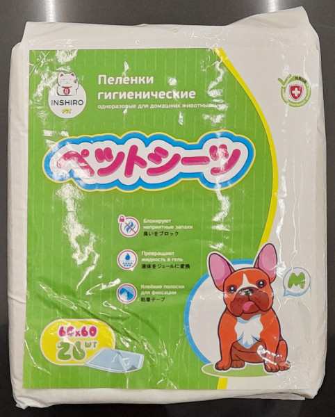 Пеленки для домашних животных, собак Inshiro Pet одноразовые 60*60 см, размер M, 26 шт., PL587 681587