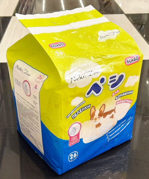 Пеленки для домашних животных, собак NekiZoo (от Maneki, Япония), размер 60*60 см, 26 шт., с клейкими полосками для фиксации на поверхности