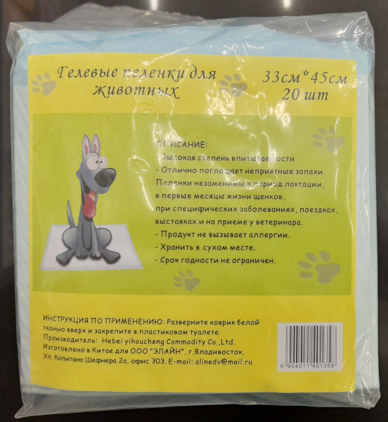 Пеленки гелевые для животных, собак 33*45 см, 20 шт., 401358