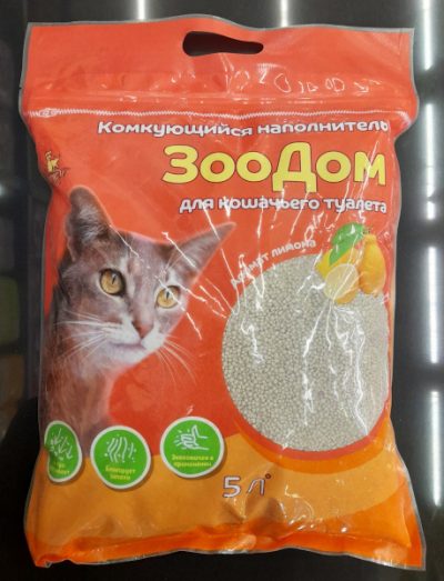 Комкующийся наполнитель для кошачьего туалета ЗооДом, 5 л, аромат лимон