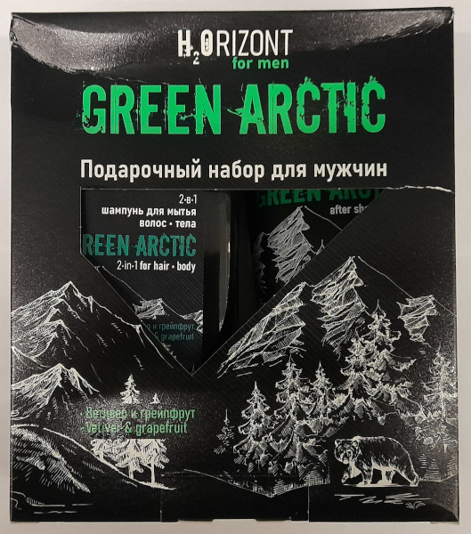 Подарочный набор для мужчин «H2Orizont» Green Arctic (шампунь 500мл + бальзам п/бритья 150мл)