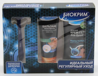 Подарочный набор для мужчин Биокрим Идеальный Регулярный Уход (крем-гель для душа, бальзам после бритья, станок для бритья), А 356, 22621