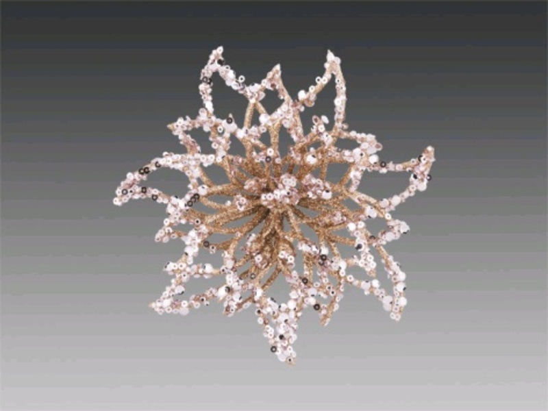 Количество товара Пуансеттия розовое золото с пайетками, лепестки - ювелирное плетение, на прищепке, d 13 см FLC17119