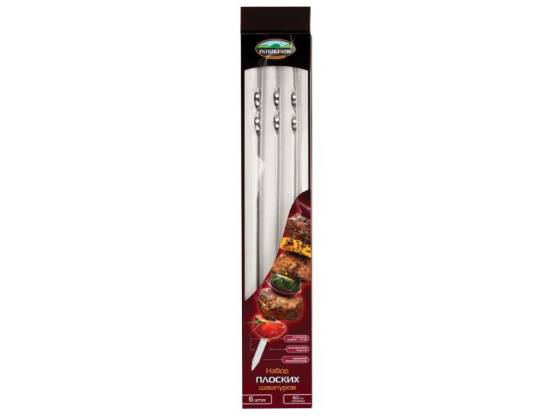 Шампуры плоские Пикничок набор из 6 шампуров 60см 401600