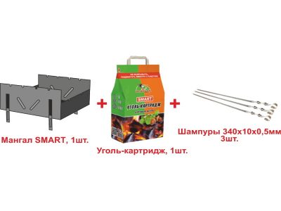 Набор для мангала Воанда Грильпак 1 Smart (мангал, уголь-картридж, набор из 3 шампуров) 21029