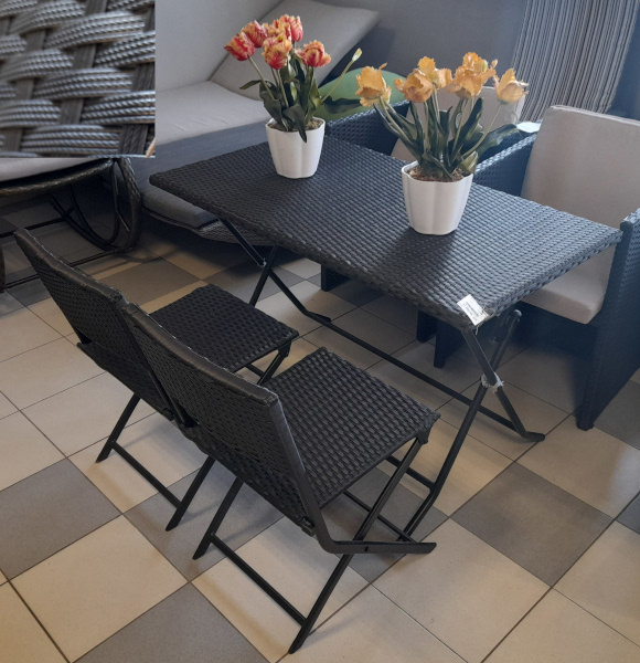 Стол обеденный, поверхность плетеная, приятная на ощупь, 1Т2424-32 (мебель садовая, плетеная, ротанг)