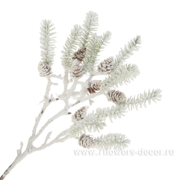 Ветка еловая заснеженная с шишками искусственная 39см Зеленая TY86-9-1455
